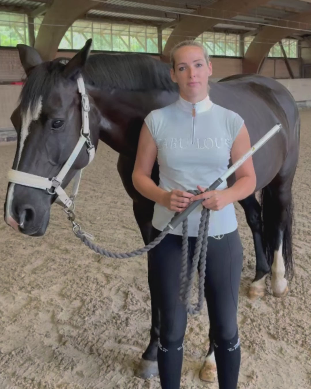 Diese Longierpeitsche besteht aus 6 robusten Fiberglas-Rohrsegmenten, die sich teleskopartig ineinander schieben lassen. Im geschlossenen Zustand ist die Peitsche lediglich 58 cm klein und wiegt nur 180g – das macht sie etwa 50% leichter als herkömmliche Longierpeitschen und somit besonders handlich. Die Beschwerden in Arm und Unterarm, die oft beim Longieren auftreten, gehören nun der Vergangenheit an.